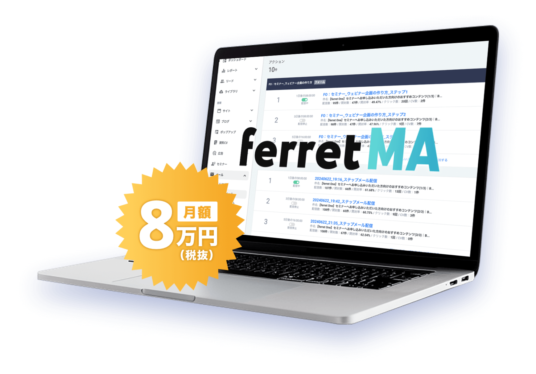 ferret One for MAは、コンテンツ作成から配信、行動検知、アプローチ、商談予約までを1つの画面でシームレスに実行。