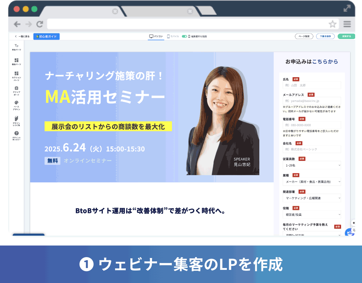 ナーチャリングに必要なコンテンツの作成から、配信、行動検知、アプローチ、商談予約まで、一連の流れを1つの管理画面でシームレスに実行。