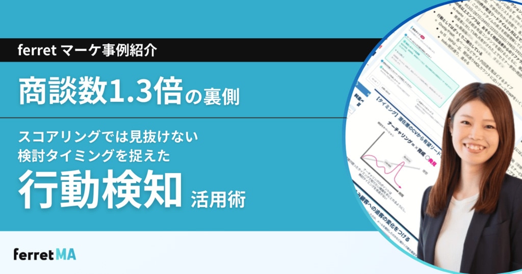 【商談数1.3倍の裏側】スコアリングでは見抜けない“検討タイミング”を捉えた行動検知活用術ferretマーケのリアル施策、全部出し!2025-10-29 03:02(更新:2025-10-29 03:02)ferret One for MA