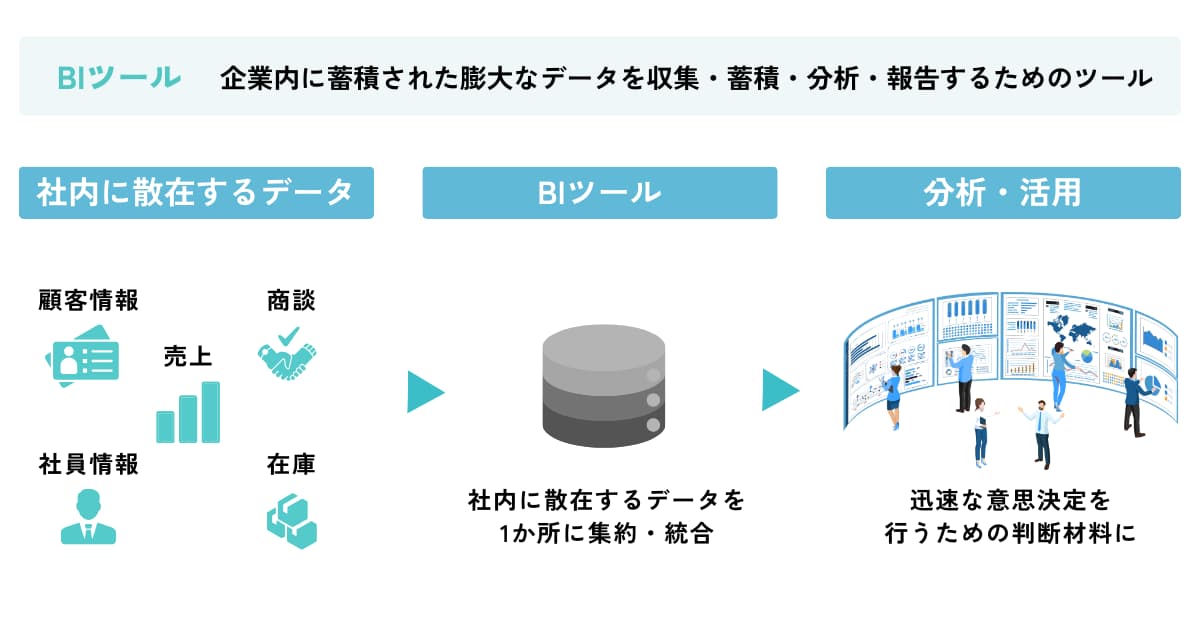 - BIツール: 複数のデータを統合・可視化し、経営判断やマーケティング戦略の立案を支援するツール