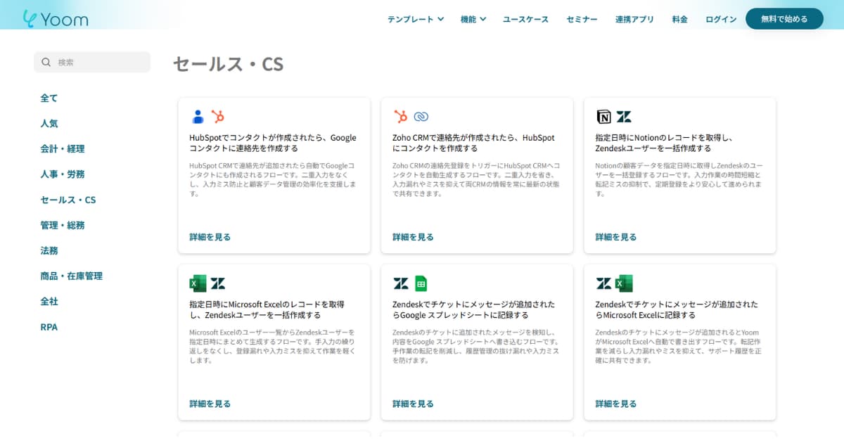 Yoomは後発ながら、完全日本語対応である点、そして国内でよく使われるSaaSとの連携テンプレートが豊富である点から、日本の非エンジニア層を中心に急速にシェアを伸ばしています。