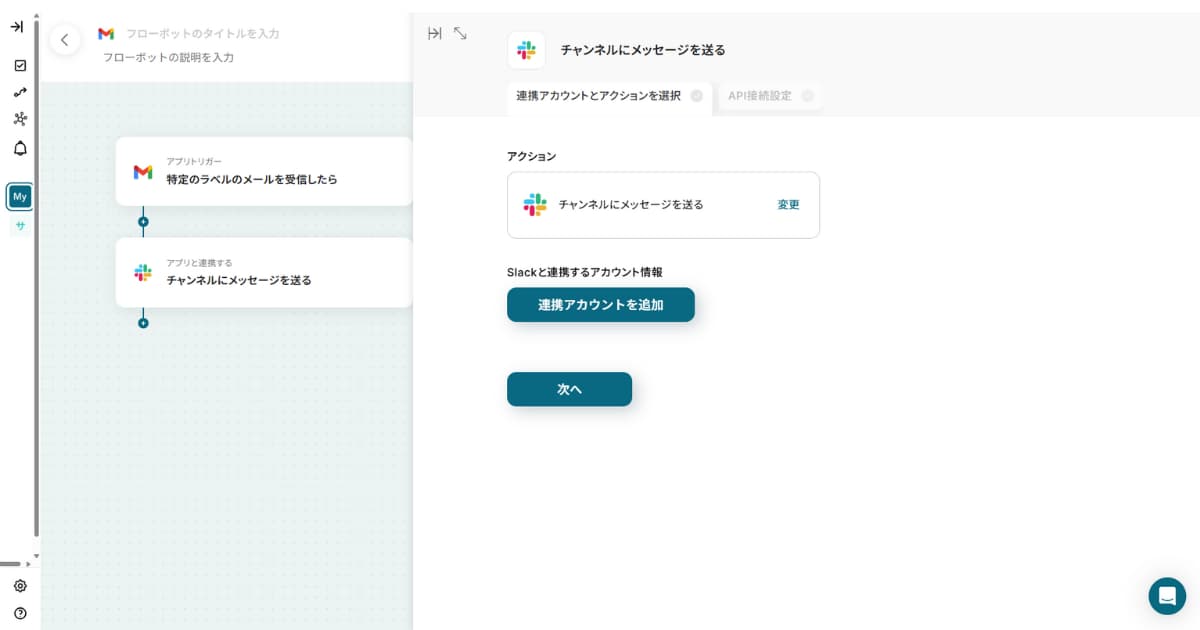 ここでは、Yoomを使って簡単な自動化フローを作成する手順を解説します。 例として「Gmailで問い合わせメールを受信したら、Slackに通知する」設定を想定します。