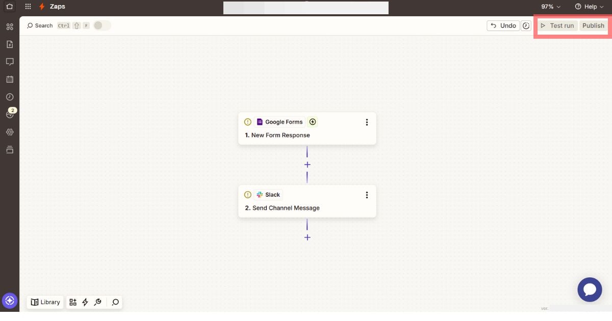 テストが成功したら、「Publish Zap」をクリックしてZapを有効化(Publish)します。