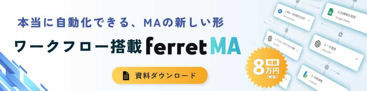 ▼月額8万でワークフローも使える「ferret MA」の資料はこちら
