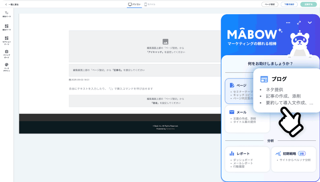 LP・メール・記事コンテンツ共に、AI機能は編集画面内で使えるため、