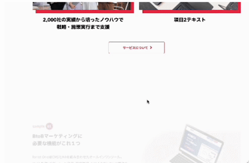 画面をスクロールすると、コンテンツがフンワリ現れる動きのパーツ。