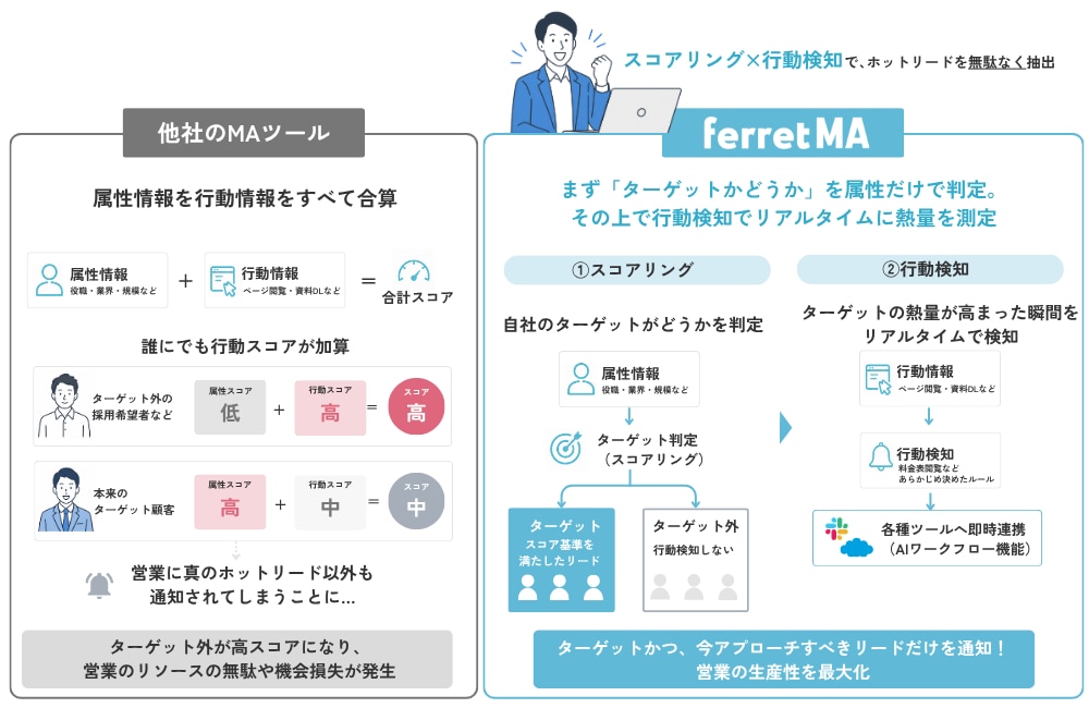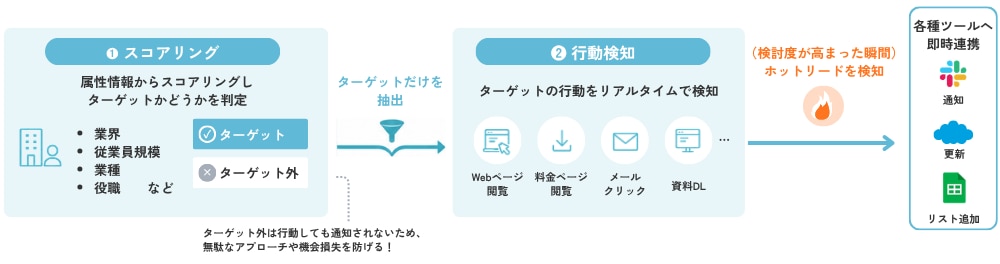 「スコアリング」と「行動検知」の両方が活用できる環境を整えています。
