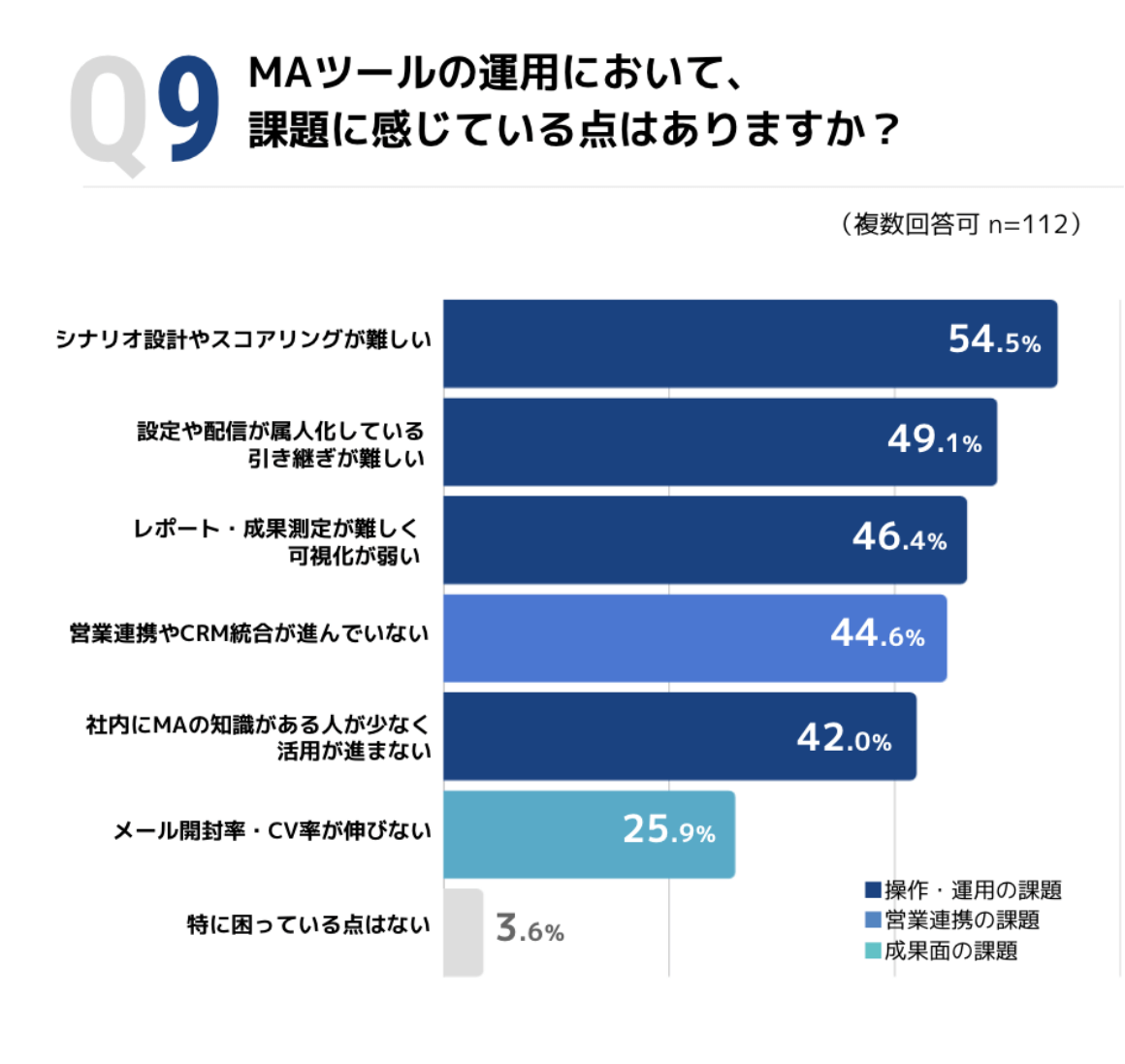 弊社のアンケート調査によると、MAツール運用の課題について最も多かった回答は「シナリオ設計やスコアリングが難しい」でした。