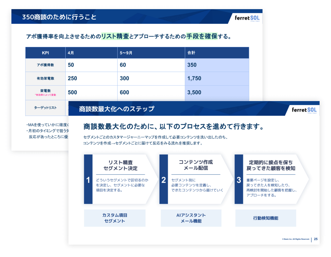 配信後の振り返りと改善提案を通じて、リード育成につなげます。