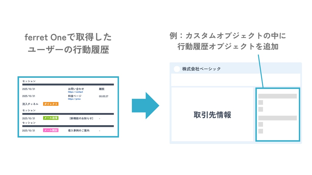 APIおよびワークフローとの連携により、Salesforce上でferret One for MAで取得したユーザーの行動履歴を直接確認できるようになります。