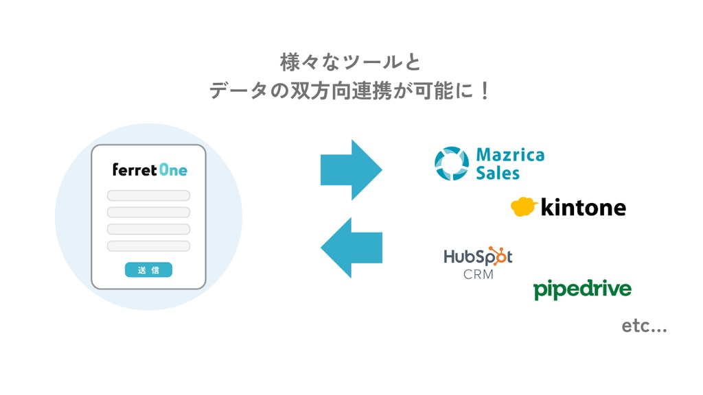 Zoom、formrun、Google フォームなど、外部ツールで取得したリード情報をferret Oneへ自動連携します。